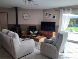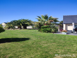 PAIMPOL à 1km du centre ville, maison de plain-pied composée d' une belle pièce de vie organisée en un espace cuisine, espace salle à manger et espace salon avec poêle à bois. Buanderie/arrière cuisine, wc, salle de bain avec baignoire et douche et 3 chambres. Terrasse Un grand garage de 48m2. Abri de jardin. Très beau terrain. L entretien de la pelouse est faite avec un robot programmé.