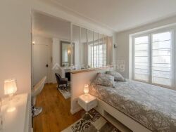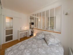 Situé au 4ème étage avec ascenseur d'un immeuble ancien de standing avec gardien. De type « double studio », l'espace est aménagé en deux pièces avec une verrière séparant l'espace nuit. La Superficie habitable est de 27,3 m2 comprenant un séjour avec cuisine ouverte entièrement équipée, un espace nuit avec lit double, une salle de douche avec WC. Chauffage et eau chauds individuels électriques.