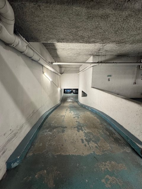 75010 Paris-Rue du Faubourg St Martin-Rue Chaudron-Parking pour SUV ou citadine au 2ème sous-sol avec accès par rampe d'un immeuble de bureau récemment restauré.