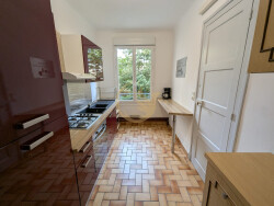 Entrée, Salon , Cuisine équipée et aménagée, chambre avec rangement, toilettes indépendantes. Appartement en très bon état: double vitrage, tableau électrique neuf, cuisine récente. Transport en commun et nombreux stationnements à proximité immédiate de l'appartement. Situé en rdc surélevé, ce T2 est loué meublé avec une cave à 650 CC.