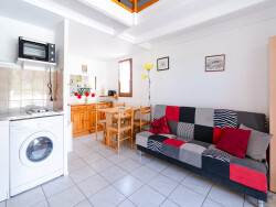 Fütterer Property vous présente à Gruissan - Les Ayguades : Situé en angle et en excellent état, pavillon lumineux de 24,26 m² (Loi Carrez) avec une grande terrasse clôturée exposée Est/Ouest. A l'intérieur, vous trouverez un séjour lumineux avec kitchenette équipée, un coin repas agréable avec fenêtre, ainsi qu'une salle de douche moderne avec wc. A l'étage, une mezzanine avec fenêtre crée un espace nuit cosy. Le pavillon bénéficie d'une place de parking privée et numérotée. Idéalement situé, il se trouve à seulement 10 minutes à pied de la plage sauvage des Ayguades et à proximité immédiate des commerces. Parfait pour une résidence secondaire ou un investissement locatif Pour plus d'informations contactez Clément.