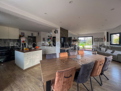 Votre agence immobilière FRANCE PRO IMMOBILIER à CHERBOURG vous propose : Un pavillon de 2018 en parfait état général avec gite indépendant de 25m2 et double garage. Cette propriété offre une autonomie de plain-pied, idéale pour un confort de vie optimal Au rez-de-chaussée, découvrez un vaste séjour lumineux d'environ 60 m2, agrémenté d'un poêle à granulés pour des soirées chaleureuses, avec cuisine aménagée et équipée ouverte. La suite parentale vous offre une oasis privée avec salle de bains (baignoire et douche) et dressing meublé. Une grande buanderie et des WC complètent ce niveau.
