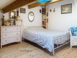 A l'étage, vous trouverez la chambre en mezzanine haute de 18m² (8m² Loi Carrez) avec velux pour une luminosité optimale