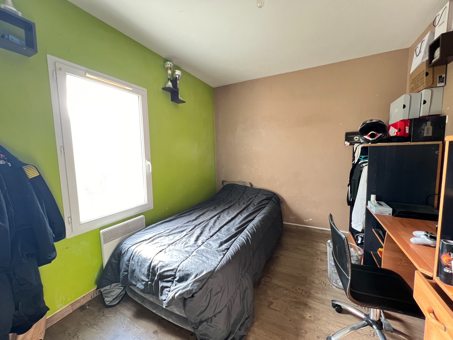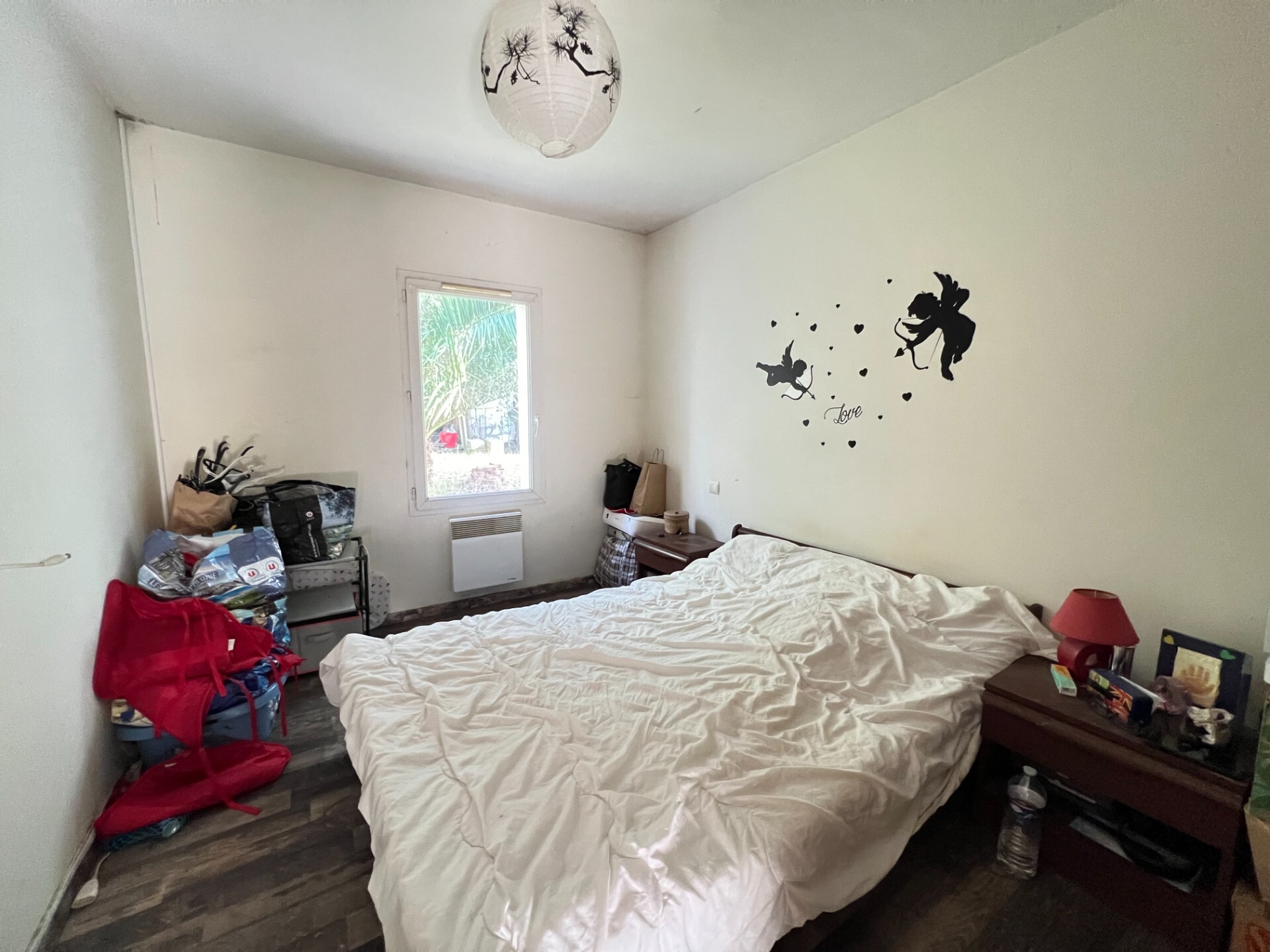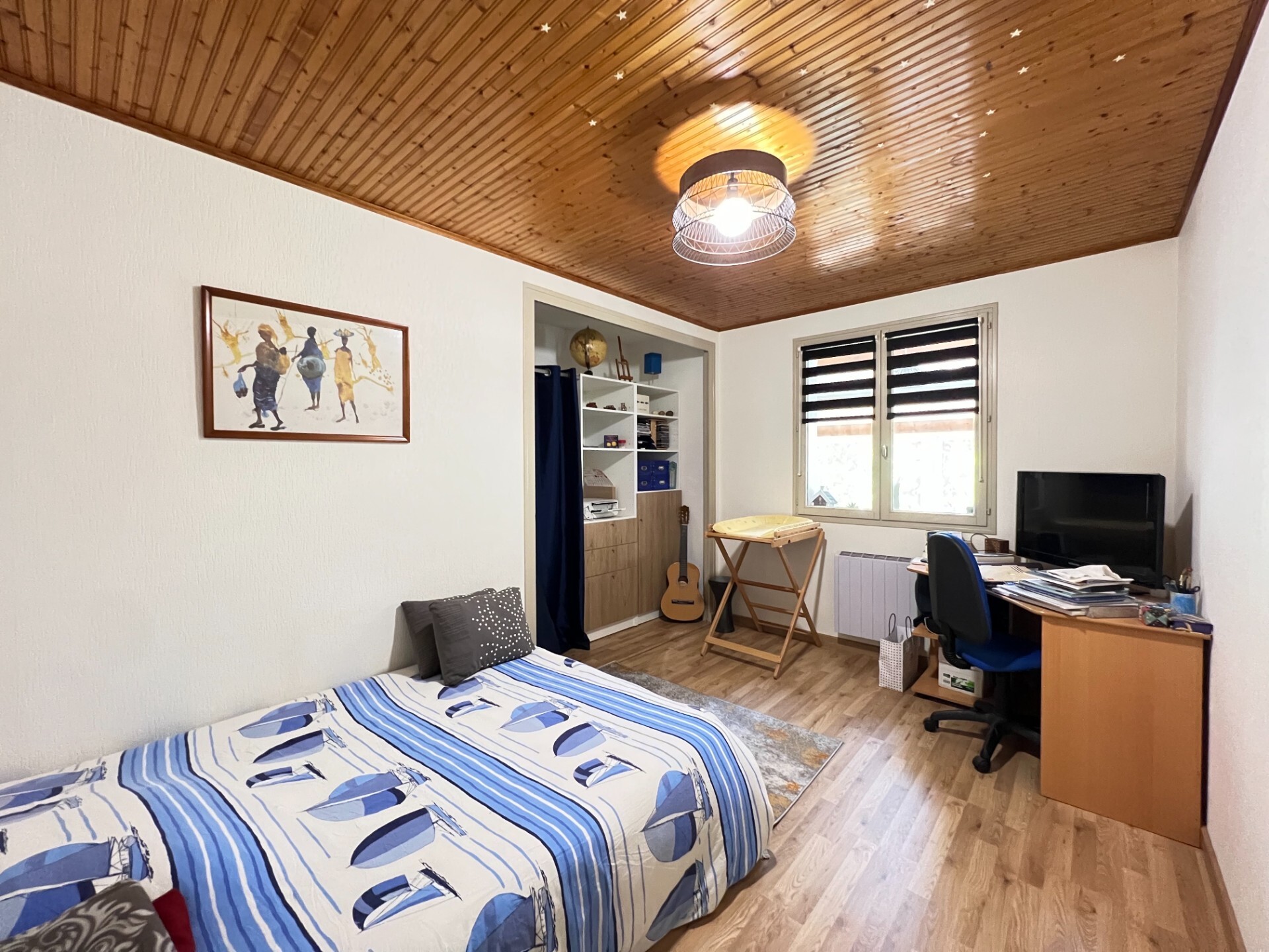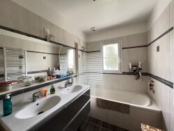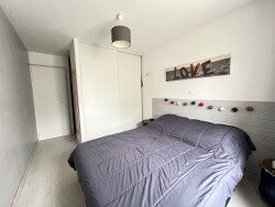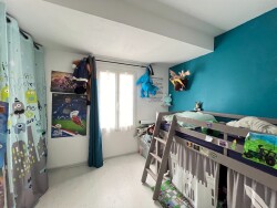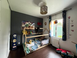La visite se poursuit grâce à un premier dégagement distribuant l'espace nuit composé d'une chambre ainsi qu'un bureau avec placard, une salle de bains avec doubles vasque et sanitaire indépendant. Vous y trouverez également une chambre parentale avec salle d'eau privative puis un accès à un cellier.