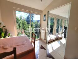 Dans un cadre privilégié, verdoyant et sans vis-à-vis, cette maison de type 7 offre 122m² habitables et un terrain généreux de 1195m², idéal pour imaginer vos projets d'aménagement extérieur.