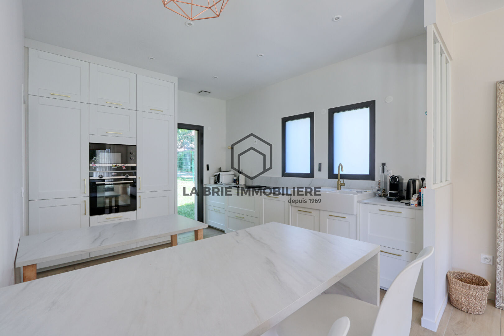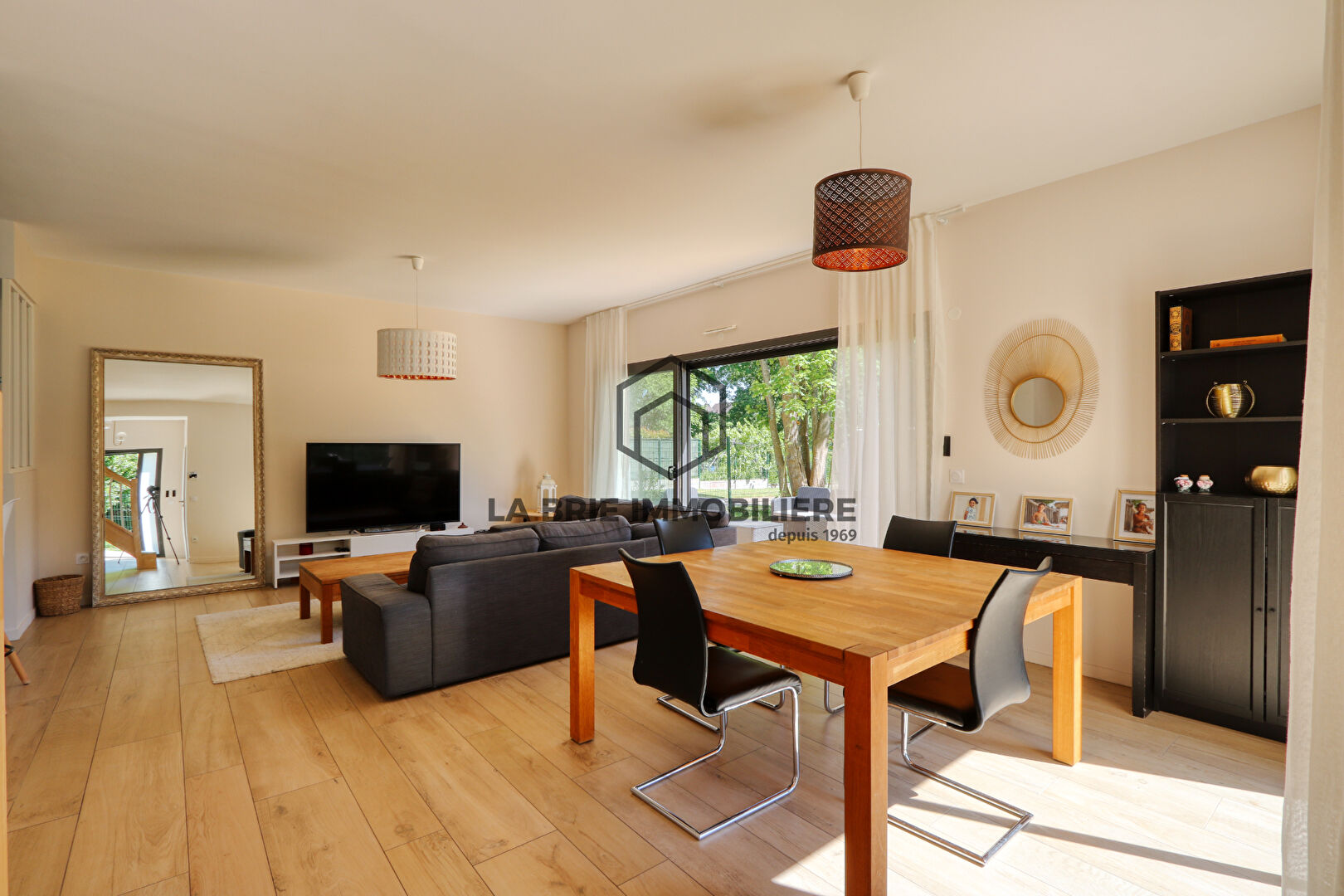 L'entrée, grande et fonctionnelle avec ses rangements sous escalier, s'ouvre sur une immense pièce de vie lumineuse et traversante de 62m² avec double salon et salle à manger, donnant sur terrasse et jardin ; poêle à bois. La cuisine est moderne et récente, aménagée et équipée (four, plaques, hotte) et bénéficie d'un cellier / buanderie attenant ; elle communique avec la salle à manger par une large verrière. Deux chambres et un wc indépendant complètent ce niveau.