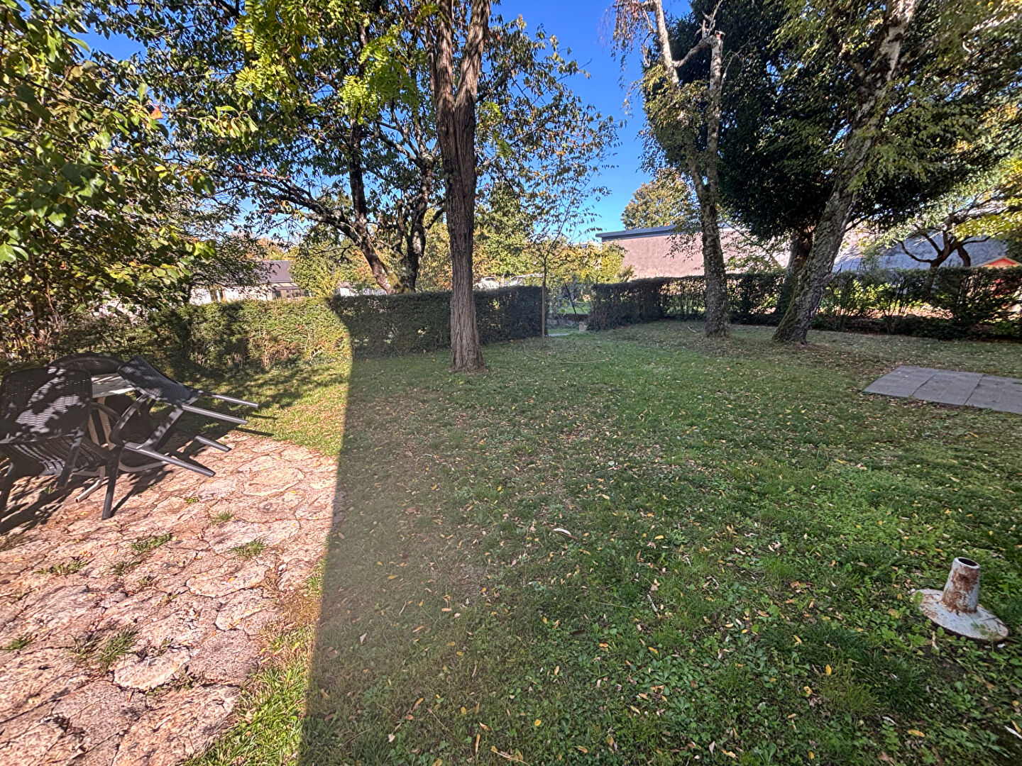 Pour vous détendre un grand jardin arboré et clos .