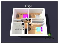?Étage : trois chambres, une salle de bains et un WC.