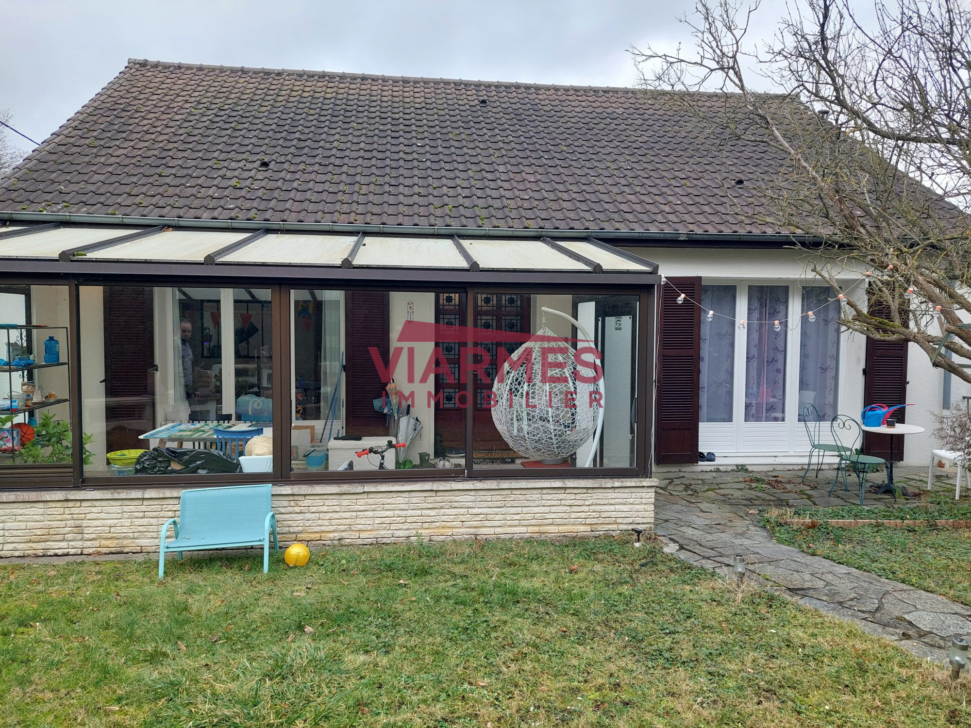 Pavillon édifié sur sous-sol total comprenant, séjour avec poêle à granule, cuisine équipée, 4 chambres, salle de bain + douche, 2 WC, terrasse couverte, garage 2 voitures au sous-sol, stationnement, terrain clos de 197 m².