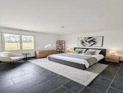 Vous y trouverez une entrée, une cuisine aménagée, un magnifique salon/séjour de 48m2 baigné de lumière menant sur un jardin verdoyant exposé Sud Ouest, avec une vue sur les champs au calme, un grand garage de plus de 40 m2, un Wc, une salle de bain au rdc ainsi qu'une chambre, permettant une vie de plain pied.