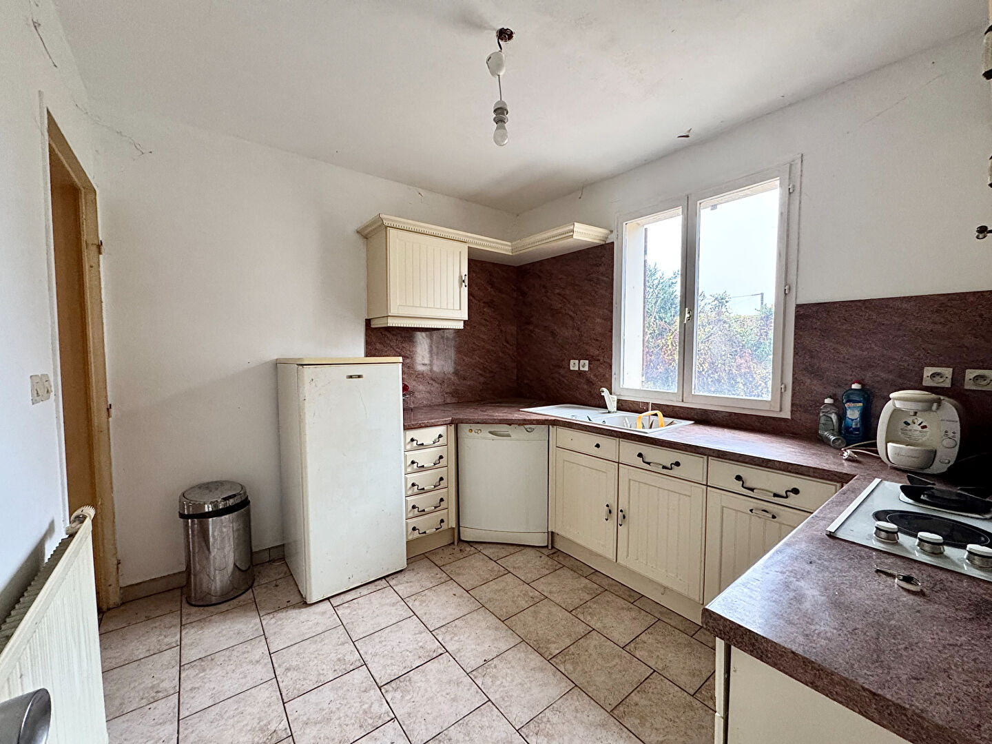 OUZOUER SUR TREZEE - Maison sur sous sol en bon état de 148 m² environ comprenant : RDC : Entrée, Salon/séjour cheminée insert, Cuisine aménagée, 2 Chambres, Salle de douche, WC 1er étage : Bureau, 2 Chambres, Salle de douche/WC Sous-sol : Garage, Salle de jeux avec cheminée insert, Atelier, Buanderie/chaufferie, Cave, Cellier Terrasse - Cabane de jardin Terrain clos et arboré avec accès au canal de 3 653 m² environ