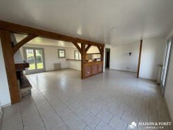 OUZOUER-SUR-TRÉZÉE - BELLE VUE SUR LE CANAL PAVILLON SUR SOUS-SOL comprenant : RDC : Salon / séjour avec cheminée / cuisine, chambre, salle de douche, wc. 1er étage : Chambre, Grenier de 60 m2 environ aménageable Sous-sol : Garage, atelier, chaufferie, cave Dépendances : Double préau Double vitrage PVC Terrain de 1ha env.