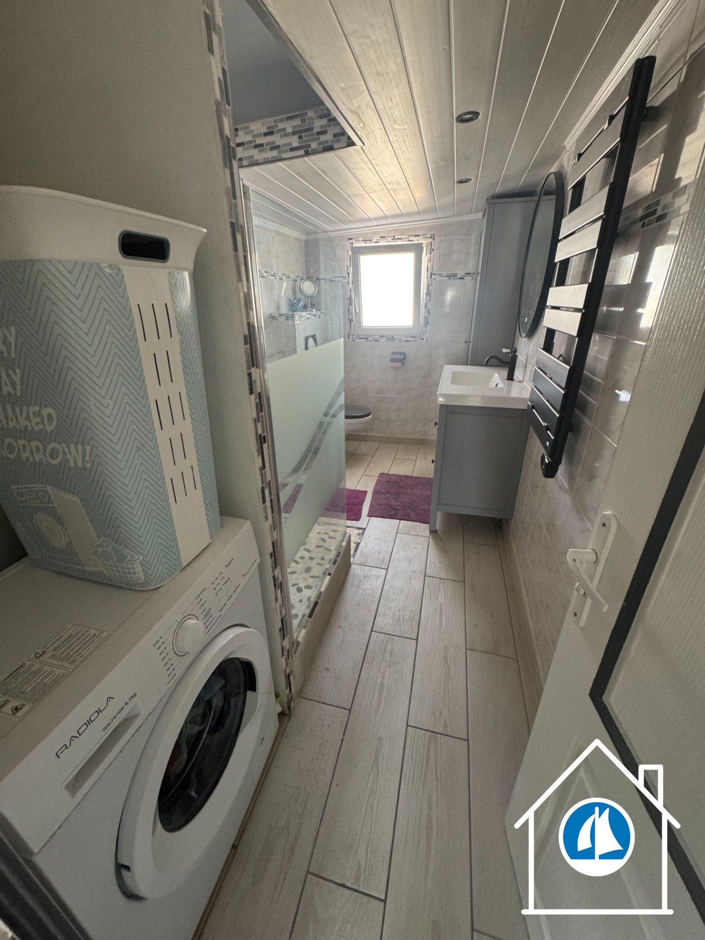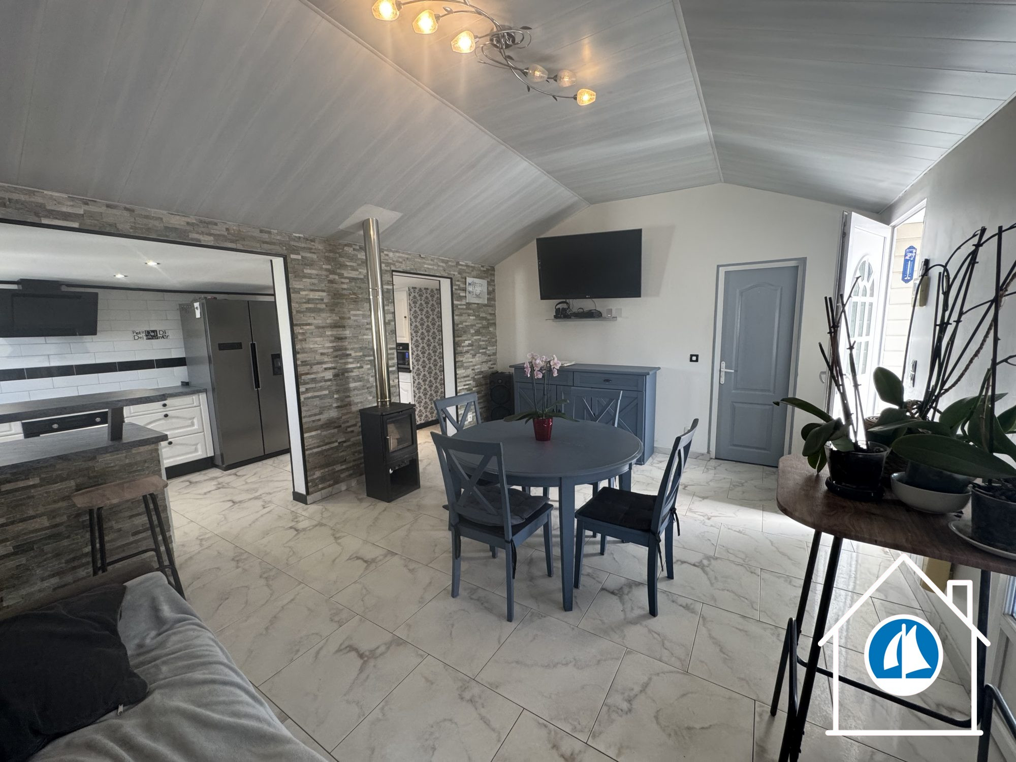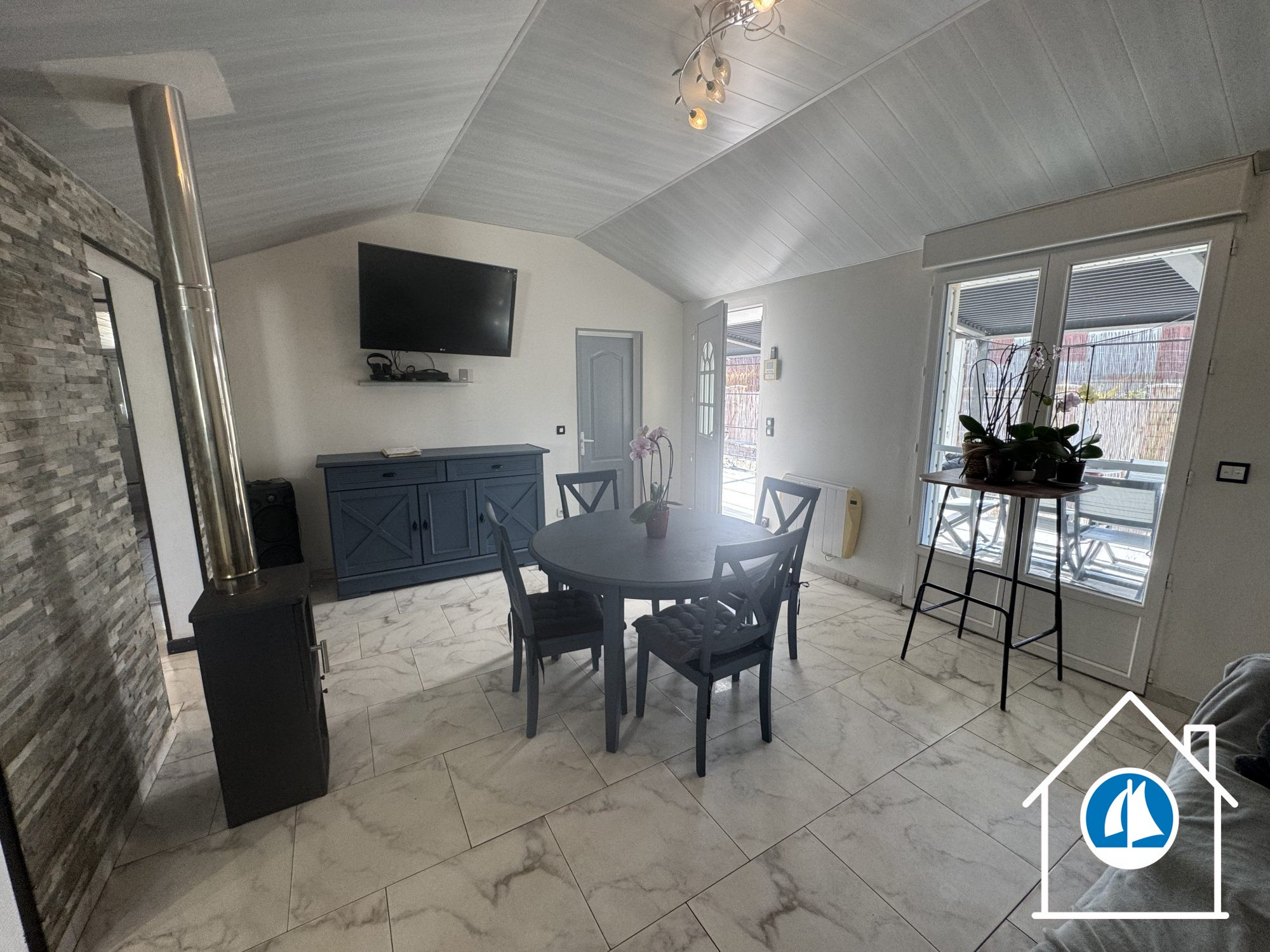 Sous compromis : PAVILLON de plain pied : entrée, pièce à vivre avec véranda à l'avant, cuisine séparée avec accès direct au garage, deux chambres, salle de bains/douche. Cour, jardin clos.Accès facile à la mer avc tracteur bâteau...