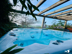 - extérieur : grande terrasse, jacuzzi et piscine avec espace bar, coin restauration. Jardin clos exposé sud sur 1960m2. Portail motorisé, parking privatif, garage.