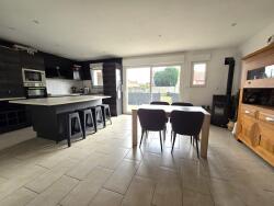 - au rez-de-chaussée: entrée, salle à manger donnant sur cuisine équipée Cuisinella avec table en ilôt central (27m²) avec poele à granulés, salon coin TV 11m², bureau 5m² avec coin rangement 6m² attenant (possibilité une chambre 11m²), salle de douche italienne 8m² avec coin buanderie et double vasque (possibilité baignoire et déplacer buanderie); dans extension pièce bureau/salle de sport/coin TV/salle de jeux 15m² avec WC indépendants;