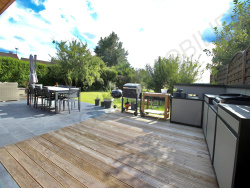 Edifiée sur un beau terrain clôturé et sans vis à vis de plus de 700 M2 et de deux garages avec une terrasse de 70M2.