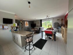 *** Une nouvelle exclusivité Cabinet Delahaye Immobilier *** Situé dans un village à 20mns de la ville d'EU. Un pavillon individuel de plain-pied, comprenant: une entrée avec placard, un séjour traversant avec cuisine ouverte équipée et aménagée, trois chambres, une salle d'eau et WC. Le bien dispose également d'un garage attenant d'environ 20m² avec porte automatisée. Menuiseries double vitrage (volets roulants électriques), chauffage électrique, tout à l'égout. Le tout édifié sur une parcelle bien entretenue d'une surface de 774m² avec jardin, terrasse d'environ 34m² avec store-ban, chalet de jardin, cabanon et appentis. * Portail automatisé * Adoucisseur * Alarme Le tout en excellent état général. Plus de renseignements en agence.