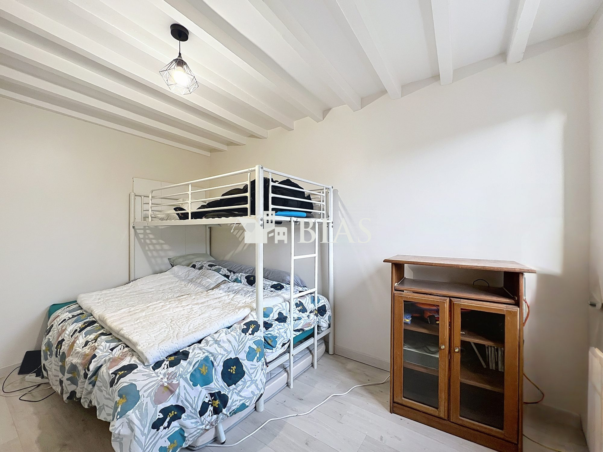 Elle se compose d'une entrée avec placard, d'un séjour lumineux avec cuisine ouverte aménagée. La partie nuit comprend deux chambres, une salle de douche et des toilettes indépendantes.