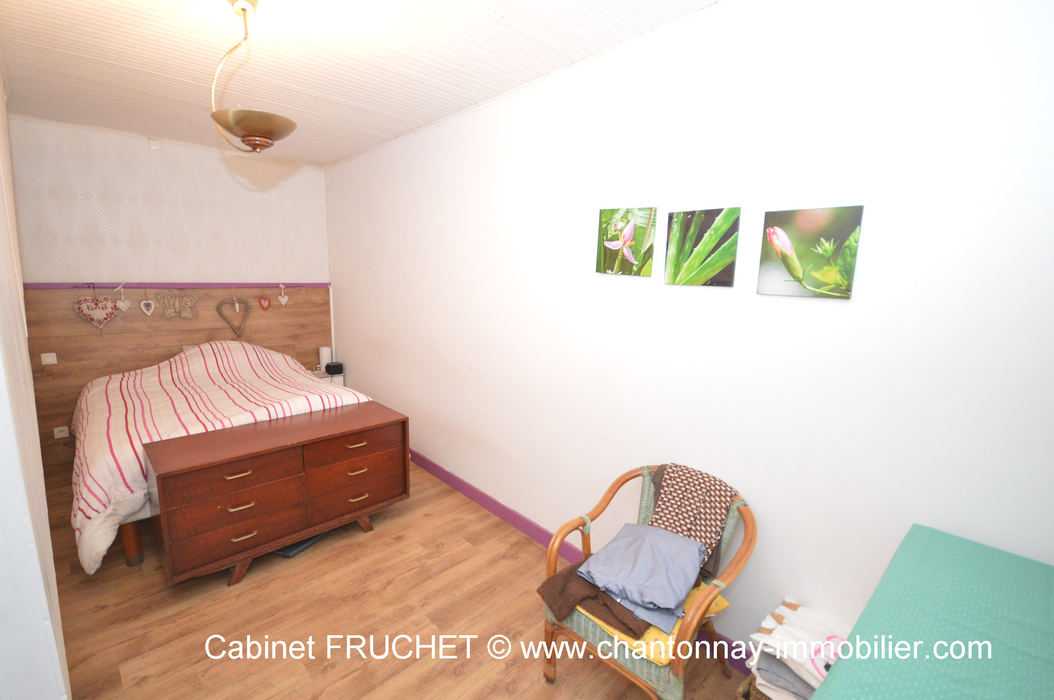 TERVAL à quelques minutes de LA CHATAIGNERAIE, joli pavillon de plain pied avec sous-sol total comprenant un hall d'entrée, une cuisine aménagée, un séjour salon de 37M², 3 chambres (12.60M², 11.70M² et 10,50M² avec placard), une salle de bains avec baignoire et douche. Au sous-sol grand garage de 67M², cellier, buanderie et cave. Le tout sur terrain arboré de 1265M².