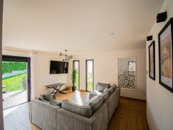 Située dans une impasse au calme, dans un quartier familial, cette belle maison contemporaine construite en 2021 vous séduira par son confort, sa luminosité et sa fonctionnalité. Au rez-de-chaussée, vous découvrirez une vaste pièce de vie lumineuse, ouverte sur le jardin grâce à une baie vitrée à galandage, idéale pour profiter des beaux jours. La cuisine, moderne et dinatoire est ouverte sur l'espace de vie et entièrement aménagée et équipée. Une suite parentale complète ce niveau, avec dressing et salle d'eau privative, offrant un espace nuit confortable et indépendant. Vous y trouverez également un second salon, parfait pour une salle TV, un bureau ou un espace détente selon vos envies. À l'étage, la maison dispose de trois chambres spacieuses avec rangements et d'une salle de bain avec baignoire, parfaitement adaptée à la vie de famille. Cette maison propose de belles prestations : chauffage au sol, excellente performance énergétique, et matériaux de qualité. Le tout est implanté sur un terrain au calme, à proximité des écoles, commerces et commodités. Une lingerie ainsi qu'un garage et plusieurs placs de stationnement sur la propritéé complétent les prestations de cette maison. SAS REVO IMMO - GUIGNARD Adeline EI - O643 127 416 - Plus d'informations sur www.revo.immo (réf. 4901051000). Agent commercial RSAC ANGERS 877 559 526 - Honoraires : 4,10 % TTC à la charge de l'acquéreur Prix hors honoraires d'agence : 390 000 - Les informations sur les risques auxquels ce bien est exposé sont disponibles sur le site Géorisques : https://www.georisques.gouv.fr/.
