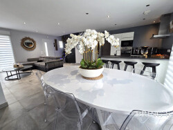 Dès l'entrée, vous serez séduits par une superbe pièce de vie de 42 m², lumineuse et conviviale, avec une cuisine entièrement équipée ouverte sur la salle à manger et le séjour. Cet espace, pensé pour le confort et le partage, s'ouvre directement sur une agréable terrasse et un jardin, parfaits pour profiter des beaux jours en famille ou entre amis.
