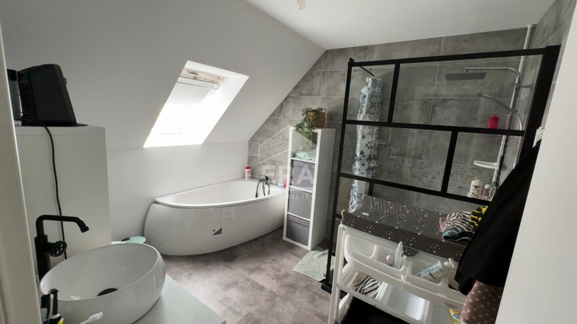 Elle offre: Une entrée cathédrale avec rangements, lumineuse pièce de vie de 56m² donnant accès à la terrasse ainsi qu'au jardin, cuisine dinatoire d'une surface de 16m², salle de bains avec douche à l'italienne et WC.