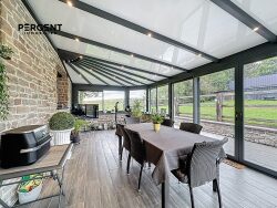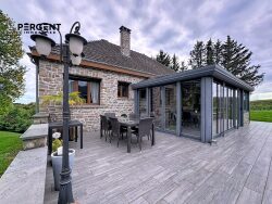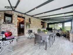 Fenêtres en PVC double vitrage pour la maison et en aluminium pour la véranda. Chauffage gaz et électrique au sol pour la véranda, taxe foncière : 1128 /an.