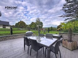 Une entrée se faisant dans la cuisine équipée et aménagée avec un couloir menant ensuite au salon/salle à manger et la véranda récente de 30m² chauffée, un couloir avec placards, une salle de douche, deux chambres et un WC. Profitez d'une grande terrasse carrelée accessible depuis la véranda, avec un jardin aménagé de chaque côté de la maison.