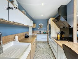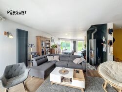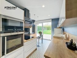 Ce dernier se compose d'une entrée donnant immédiatement sur la pièce principale de vie de plus de 60 m² comprenant salon, salle à manger et une cuisine entièrement meublée et équipée. Baignée de lumière grâce à ses nombreuses ouvertures, cette pièce centrale vous offre un accès direct à la terrasse et au jardin plat entièrement clôturé sans vis à vis.