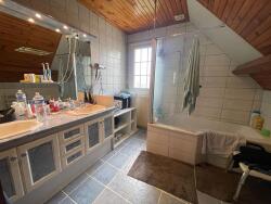 A l'étage : trois chambres (dont une actuellement en dressing), salle de bains avec wc.