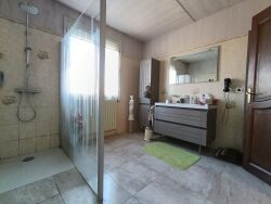 L'espace de vie : Surface : 204 m² habitables de plain-pied. Pièces XXL : Vaste entrée avec placards, cuisine dinatoire équipée, double séjour lumineux de 50 m² avec cheminée. Nuit : 4 chambres (dont 2 avec salle de douche privative), une salle de douche supplémentaire et 2 wc séparés. Le petit + : un coin bibliothèque et de nombreux placards de rangement dans le couloir. Les extérieurs et annexes : Terrain : 3 552 m² plat, clos et arboré. Charmant petit bassin aménagé. Sous-sol complet : Double garage (portes électriques), cave à vin, grand atelier, buanderie/chaufferie. Potentiel : Très grand grenier facile d'accès, isolé et aménageable sur toute la surface de la maison (+200m²!) Dépendance : Grand appentis offrant un espace de rangement semi-ouvert (véhicule, bois,) et dont le toit peut être aménagé en terrasse Confort : Double vitrage, volets roulants électriques, portail électrique avec interphone. Chauffage : Pompe à chaleur et fioul, système économique (DPE = C)