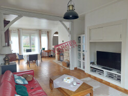 Solide pavillon indépendant édifié sur s/sol total semi-enterré offrant, entrée, séjour double avec cheminée, cuisine équipée, 2 chambres, salle de bains (baignoire + douche), WC, dégagement. A l'étage, 2 chambres, bureau, poss pièce à aménager (poss SDB). S/sol total aménagé en chambre, bureau, buanderie, chaufferie et garage, terrain clos de 642 m². Réf 206, honoraires à la charge des acquéreurs.