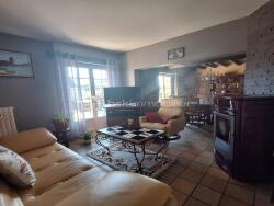Composé d'une entrée, une cuisine, une belle piece de vie salle/salon avec poele à granulés donnant sur la terrasse qui descend directement dans le jardin.