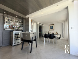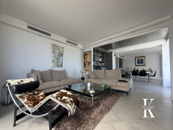 Dès l'entrée, les espaces impressionnent par leur générosité et leur luminosité. Le triple séjour en enfilade, composé d'un vaste salon, d'une salle à manger raffinée et d'une cuisine ouverte haut de gamme, offre un cadre de vie fluide et convivial, idéal pour recevoir dans une atmosphère prestigieuse, sublimé par une vue à couper le souffle sur la Méditerranée, le massif de l'Estérel et les îles de Lérins.