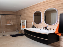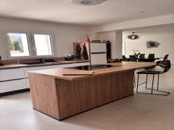Dans l'un des quartiers les plus recherchés de Perpignan Sud-Est , l'Agence LAVILLE IMMO vous propose cette villa plain-pied en 4 faces de 191 m2 environ ( surface inscrite au plan) entièrement rénovée avec beaucoup de goût dans un esprit puriste et ofrant de très beaux volumes et un cadre de vie privilégié. Elle comprend une très belle et lumineuse pièce de vie principale de plus de 56 m2 donnant sur une véranda fermée orientée sur le jardin. Cuisine indépendante ouverte sur séjour avec ilôt central et entièrement équipée avec électroménager neuf. Coin nuit indépendant avec suite parentale et sa grande salle d'eau avec WC, deux chambres spacieuses de + 13m2 et une salle d'eau avec WC. Un bureau et une buanderie peuvent également être utilisés comme deux chambres supplémentaires. WC individuel avec lave-mains. A l'extérieur, vous profiterez d'un grand jardin aménagé avec pelouse synthétique et piscine sans vis-à-vis avec terrasse , le tout au calme absolu et dans un cadre intimiste appelant à la détente. Grand garage spacieux de 40 m2 et possibilité parkings à l'intérieur de la parcelle. L'environnement calme et résidentiel, la qualité de la rénovation ainsi que la proximité des commodités commerces écoles et accès routiers font de cette maison une opportunité rare sur le marché local ! Idéal pour une famille recherchant confort espace et qualité de vie à Perpignan. Nous contacter pour plus d'informations ou pour une visite. Les informations sur les risques auxquels ce bien est exposé sont disponibles sur le site Géorisques : https://www.georisques.gouv.fr. Honoraires d'agence à la charge vendeur.