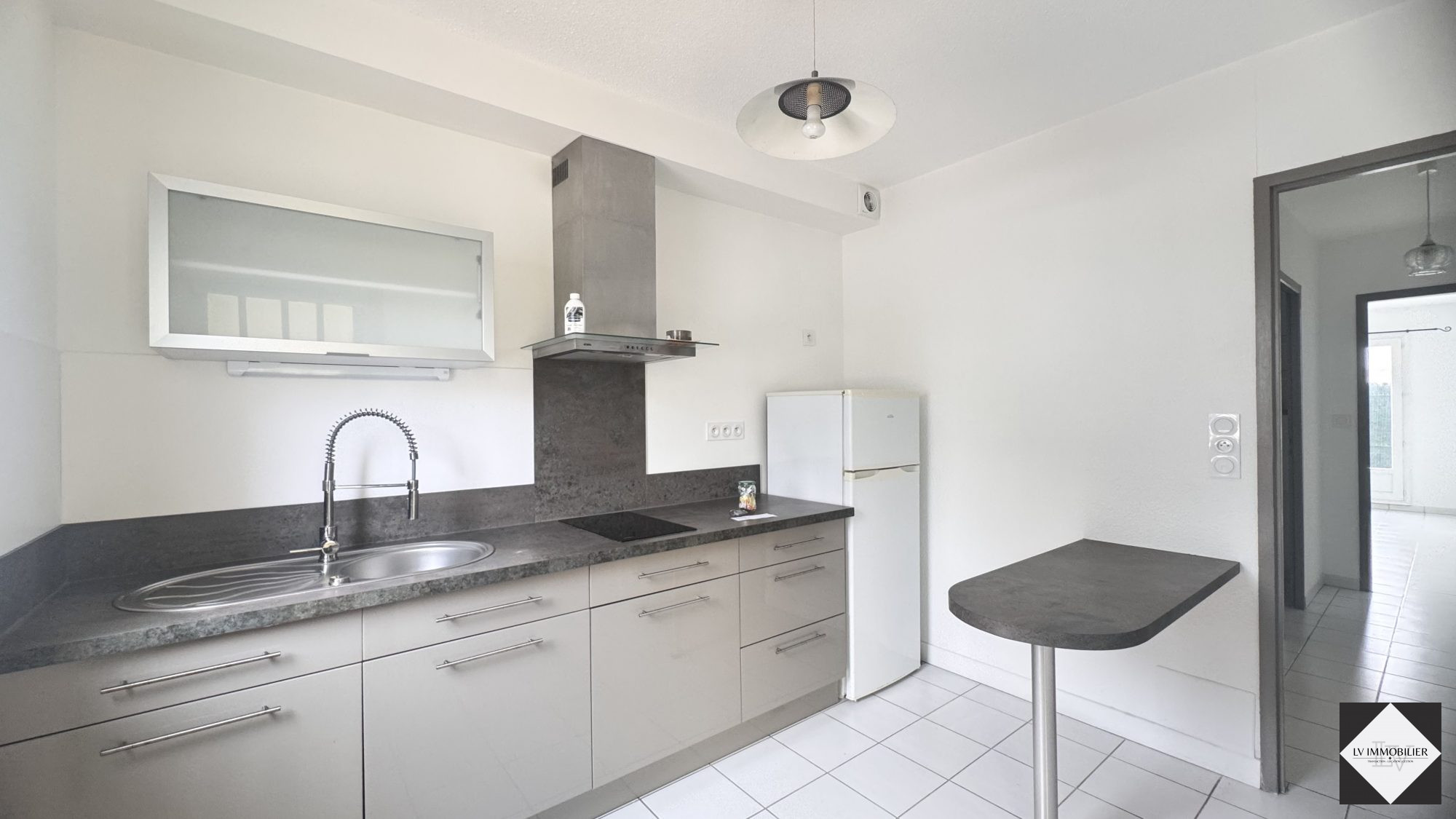 La cuisine américaine, aménagée et équipée, est un véritable espace de vie convivial, parfait pour préparer vos repas tout en profitant de la compagnie de vos proches. Les fenêtres en PVC avec double vitrage garantissent une isolation optimale et une vue dégagée sur l'extérieur, laissant entrer la lumière à flots.