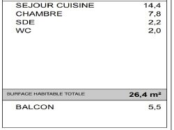 Idéal pied à terre, au deuxième étage expo sud ouest, Petit T2 avec terrasse, parking et cave inclus.