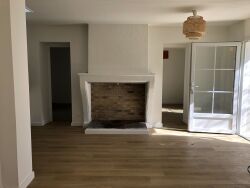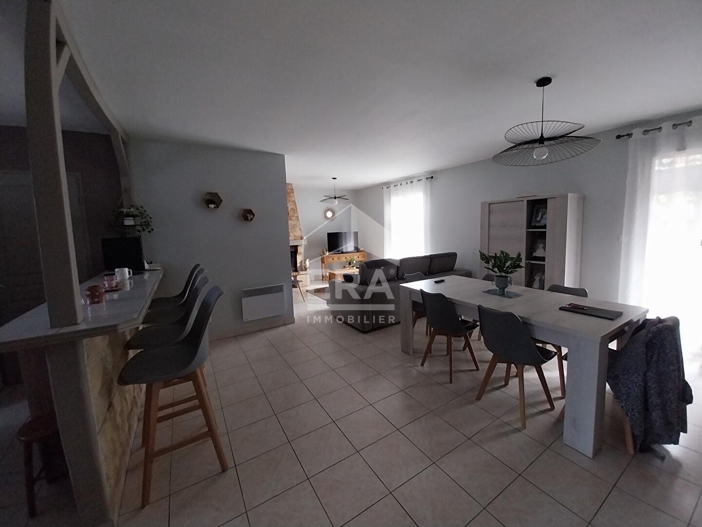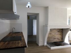 Une belle et grande cheminée trône entre le salon et la cuisine ouverte et chauffera ainsi les deux chambres qui sont derrière.