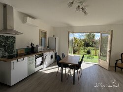 A louer - Maison de plain-pied avec petit jardin partiellement clôturé. Une belle et lumineuse pièce de vie avec cuisine aménagée et équipée d'une plaque induction, four, hotte, lave-vaisselle, lave-linge, sèche linge, réfrigérateur, micro-ondes et une table avec 5 chaises. Le coin nuit tout aussi lumineux avec dressing, lit 2 places, douche et vasque. WC avec lave mains séparé. 2 emplacements de stationnement devant la maison et petit cabanon dans le jardin. Loyer HC 690 Provisions de charges avec régularisation annuelle: 10/mois. Dépôt de garantie 2 mois pour bail meublé: 1 380 (encaissable en différé). Honoraires agence : 350 (encaissable en différé). Disponible au 1er décembre 2025. Les informations sur les risques auxquels ce bien est exposé sont disponibles sur le site Géo risques : www.georisques.gouv.fr
