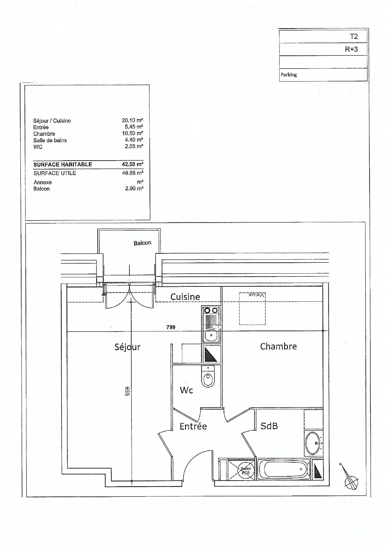 ...Le bien dispose d'un séjour, une cuisine ouverte, une chambre, une salle de bain, un WC, un...