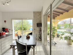PIGNAN maison individuelleT6 parfaitement entretenue d'environ 192m2 habitables proche de toutes les commodités sur un terrain clos et arboré de 1088m2. Au rdc lumineux espace de vie avec cheminée avec insert, traversant avec de belles hauteurs sous plafond, cuisine dinatoire de 22m2 avec ilot central équipée, arrière cuisine (cellier et buanderie) de 13m2, 3 chambres dont 2 avec salles d'eau privatives, nombreux rangements et WC indépendant. A l'étage 2 chambres avec placards, 1 salle de bains communicante et WC indépendant. En annexe, un sous-sol de 110m2 avec accès direct par l'intérieur de la maison, cave à vin, piscine carrelée et sécurisée de 10 par 5, un pool house avec une cuisine équipée, four à pizza / pain, barbecue, volets roulants électriques et douche et WC indépendant. Belles prestations: double vitrage, volets roulants électriques, aspiration centralisée, chauffage au sol au RDC, forage, pool house, sous-sol de 110m2, porte de garage électrique, portail automatique..... Contact Sandra: 06 98 54 88 34 - RSAC 393 265 038 - Annonce rédigée et publiée par un Agent Mandataire -