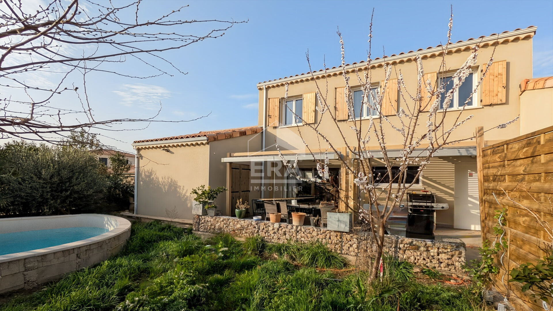 Côté extérieur, une terrasse de 20 m2 et une piscine récente permettent de profiter agréablement des beaux jours tandis qu'un autre espace peut accueillir un petit potager ou des jeux d'enfant