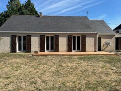 Saumur plain-pied à côté de la gare et de toutes commodités, une maison type 4 de 100m² habitables. Une entrée avec un placard, une cuisine indépendante aménagée et équipée, une buanderie cellier, un salon séjour avec un insert bois, une climatisation réversible, 3 chambres avec chacune un placard, une salle d'eau et un wc. Un garage avec une porte motorisée. Une partie rangement à la suite du cellier buanderie, un grenier, et un abri de rangement dans le jardin. Jardin et sa terrasse. Au calme dans une rue résidentielle et hors lotissement. BON DPE.