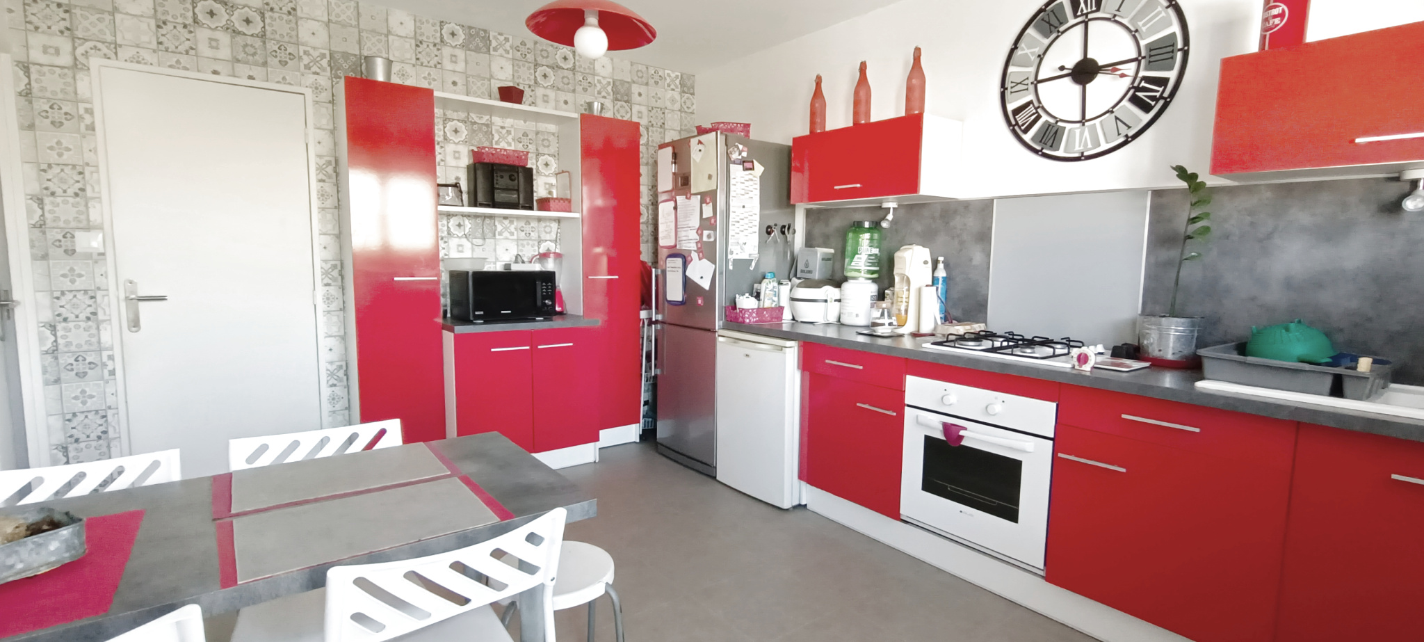 Les menuiseries en double vitrage, les baies vitrées et les 6 mètres de hauteur ajoutent une touche moderne à l'ensemble.