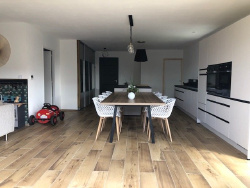 Nouvelle exclusivité Estuaire Immobilier : Rare, à 5 mn du centre de SAVENAY, située sur la commune de LA CHAPELLE-LAUNAY, découvrez cette maison BBC, RT 2012 de 2020 d'une surface de 130 m2 environ, édifiée sur un terrain de 650 m2. Elle offre : entrée, spacieux et lumineux salon/séjour, cuisine entièrement aménagée/équipée avec îlot central, cellier aménagé, suite parentale comprenant dressing et salle d'eau, un espace nuit desservant trois chambres, une salle de bains avec douche, toilettes. Un jardin entièrement clos avec terrasse exposée sud et double garage motorisé attenant complètent le tout. Votre conseillère :