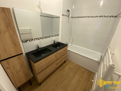 - RARE sur le secteur - L'agence Vimmo vous propose cette maison entierement rénovée avec goût, à proximité immédiate des commerces et des écoles, comprenant au RDC une entrée avec placard (4,60m2), une pièce de vie lumineuse (23,07m2) avec une cuisine ouverte aménagée-équipée (plaque de cuisson, hotte, évier, four, emplacement lave-vaisselle), un cellier avec branchements lave-linge (2,72m2), un W.C séparé avec lave-mains (1m2). A l'étage : un palier (4,16m2), 2 chambres (10,07m2 et 11,33m2), une salle de bains (2 vasques-rangements, baignoire, sèche-serviette) (3,85m2) et un W.C séparé (1,25m2). Prestations neuves de qualités, volets roulants entièrement électriques, huiseries PVC double vitrage, exposition Sud, chauffage gaz de vile avec chaudière individuelle. 1 place de stationnement privative et nombreux stationnements libres non payants à proximité du logement.