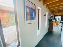 Vous découvrirez ensuite un grand espace bureau ou détente d'environ 20 M2 ouvert sur le patio avec vue sur la piscine. Le couloir qui dessert la partie nuit est également très lumineux grâce à de larges meurtrières donnant sur le patio.