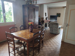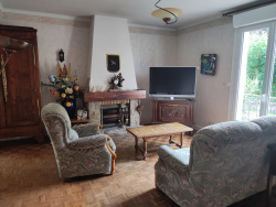 Maison d'habitation sur sous-sol complet, composé au RDC d'une entrée, une cuisine aménagée donnant sur la véranda, un séjour-salon avec cheminée (insert), une chambre, une salle d'eau (douche à l'italienne), un wc. A l'étage : un couloir desservant 3 chambres, dont une petite avec dressing, une salle d'eau avec wc, un débarras. Au sous-sol : Grand garage. Chaufferie. Buanderie. Volets électriques. Terrain clos : 718 m2. Abri de jardin. Abri bois. Assainissement collectif.