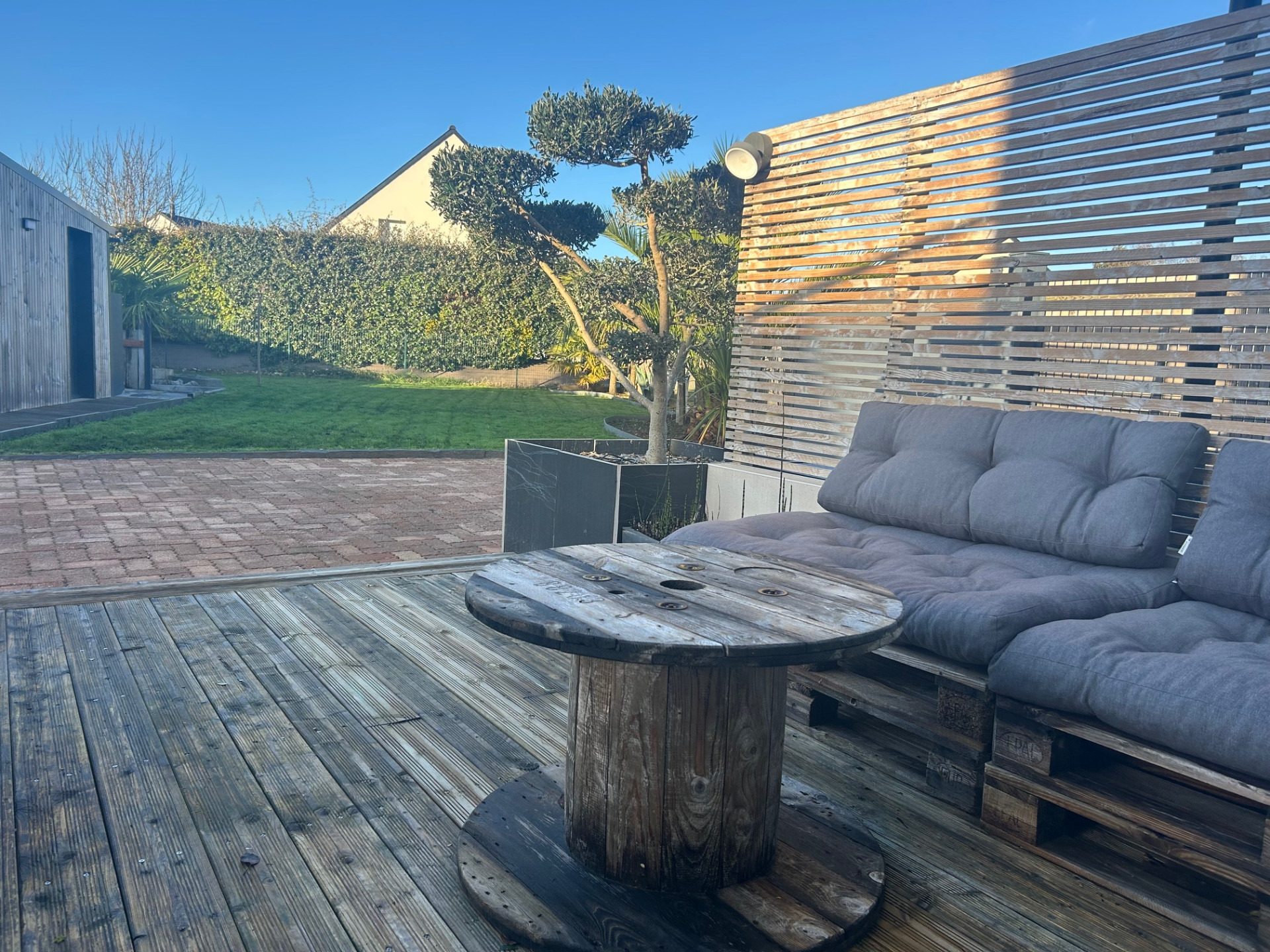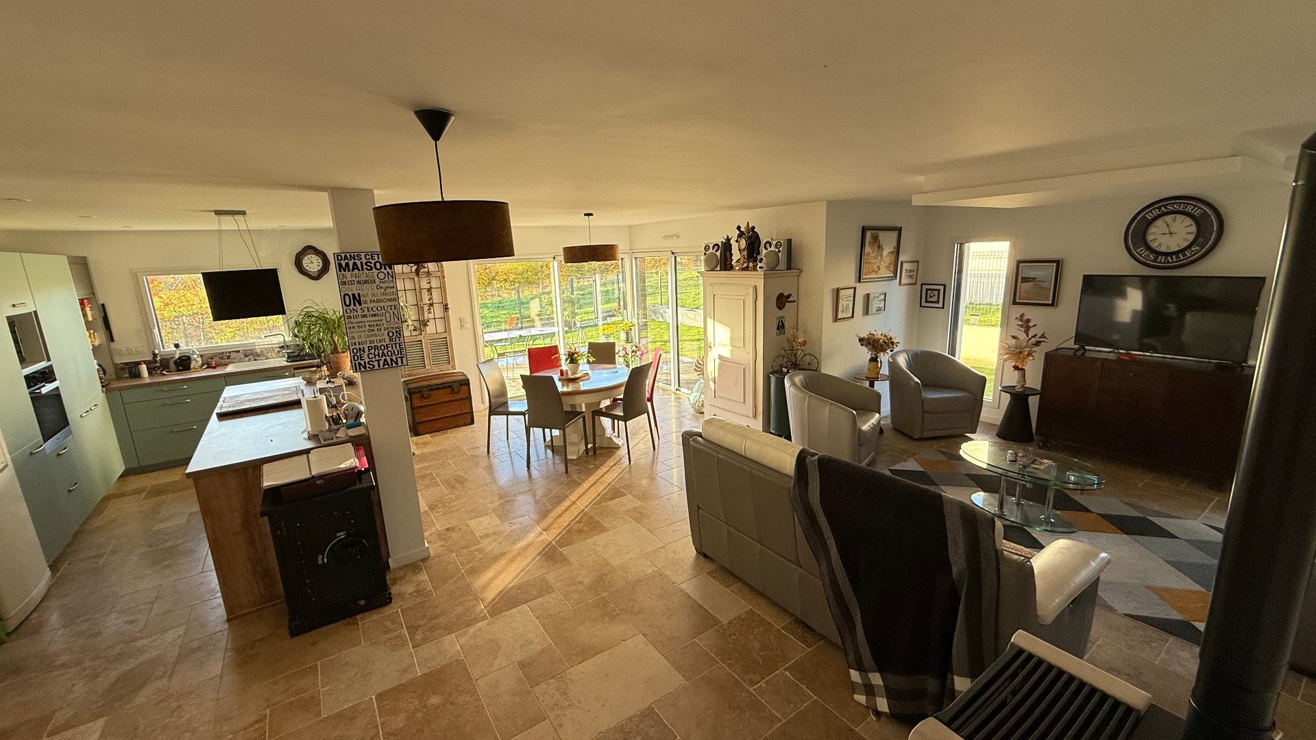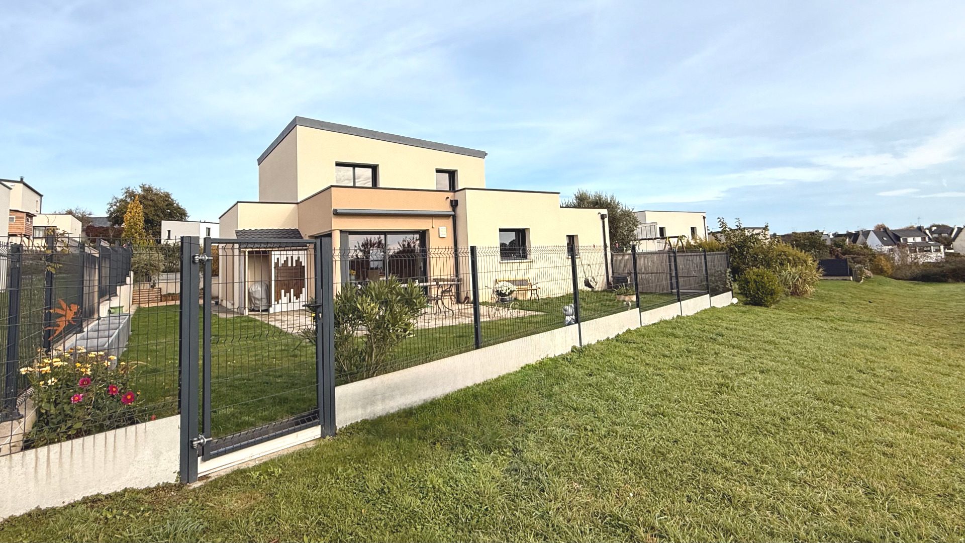 PLÉRIN - SAINT-LAURENT DE LA MER Belle maison contemporaine de 7 pièces de 2020 en bois qui séduit par son architecture moderne et ses prestations soignées.La maison s'organise autour d'une spacieuse pièce de vie de 52 m², baignée de lumière, où nous retrouvons une cuisine équipée à l'américaine ainsi que l'espace salle à manger.Le poêle à granulés apporte sa touche chaleureuse tout en garantissant une excellente performance énergétique. Cet espace convivial s'ouvre sur une grande terrasse, idéale pour profiter pleinement des beaux jours, le jardin et la piscine hors-sol.Le rez-de-chaussée accueille trois chambres dont une avec accès direct à la salle d'eau, un dressing aménagé ainsi qu'un WC indépendant.À l'étage, un joli dégagement agrémenté de rangements vient desservir deux chambres une salle d'eau ainsi qu'un WC. On y retrouve également un accès nous menant au toit terrasse, offrant une vue dégagée avec un agréable aperçu sur la mer.Ce bien bénéficie de prestations modernes, dont une domotique intégrée, assurant confort et praticité au quotidien. Un garage fermé vient parfaire l'ensemble.CLAIRE ET ENSOLEILLÉE ... VIE DE PLAIN PIED... VUE MER... Réf 4266.CLASSE ÉNERGIE A. CLASSE CLIMAT A. Estimation des coûts annuels d'énergie du logement : entre 840 et 1 190 par an d'après les prix moyens des énergies indexés sur les années 2021, 2022 et 2023 (abonnement compris).Honoraires 5 % TTC à la charge de l'acquéreur inclus. Prix hors honoraires d'agence 475 000 .