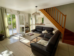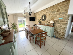 Nichée au calme d'une impasse, en plein coeur du bourg de Ploeren, cette magnifique longère rénovée ne manquera pas de vous séduire par son charme. Dès l'entrée, vous découvrirez une pièce de vie avec son poêle à bois, une cuisine ouverte équipée avec son espace repas, le tout prolongé par une terrasse exposée plein sud. buanderie avec salle d'eau, garage, atelier. A l'étage, 3 chambres dont 2 avec salles d'eau privatives. Cette longère vous offre également un gîte entièrement rénové composé d'une pièce de vie avec une cuisine ouverte équipée et, à l'étage une chambre avec sa salle d'eau. Beau revenu locatif. Cette maison est édifiée sur un terrain intimiste arboré clos de murs d'une surface d'environ 560 m2. Possibilité d'acquérir en sus un terrain constructible d'environ 399m2.